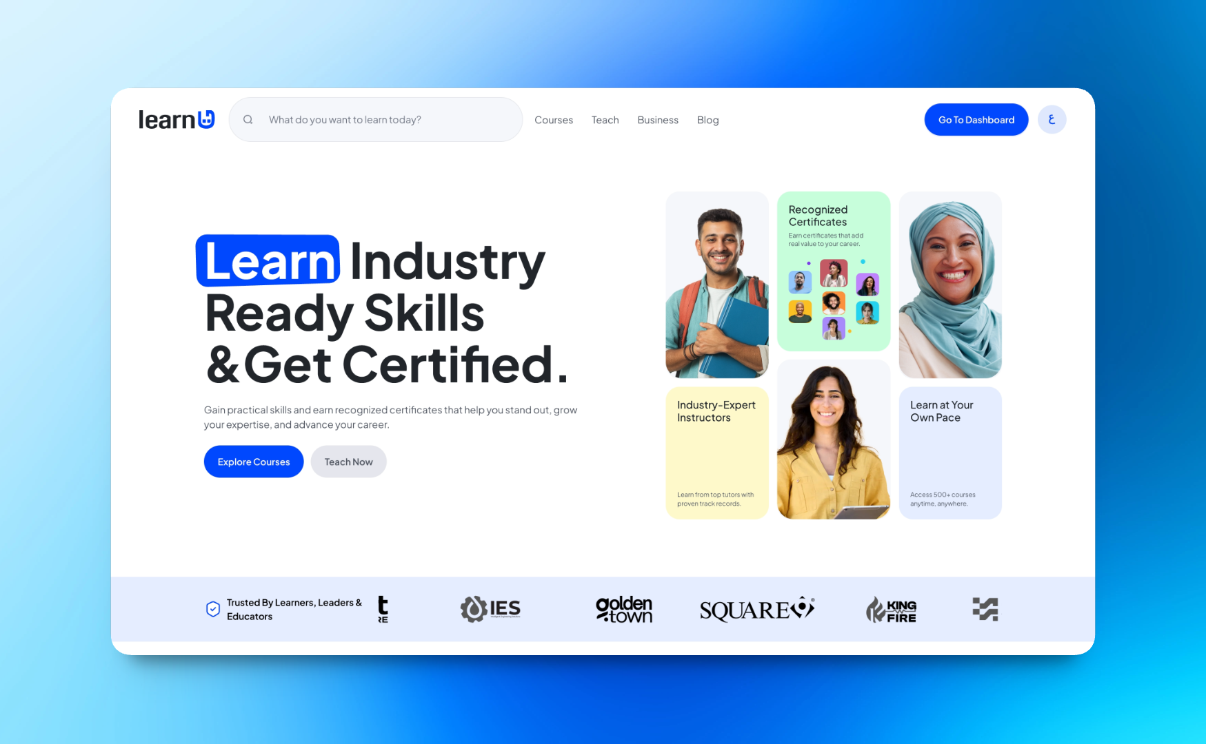 Educational platform for course discovery, video learning, progress tracking, and payments—supporting students, tutors, and business teams.
